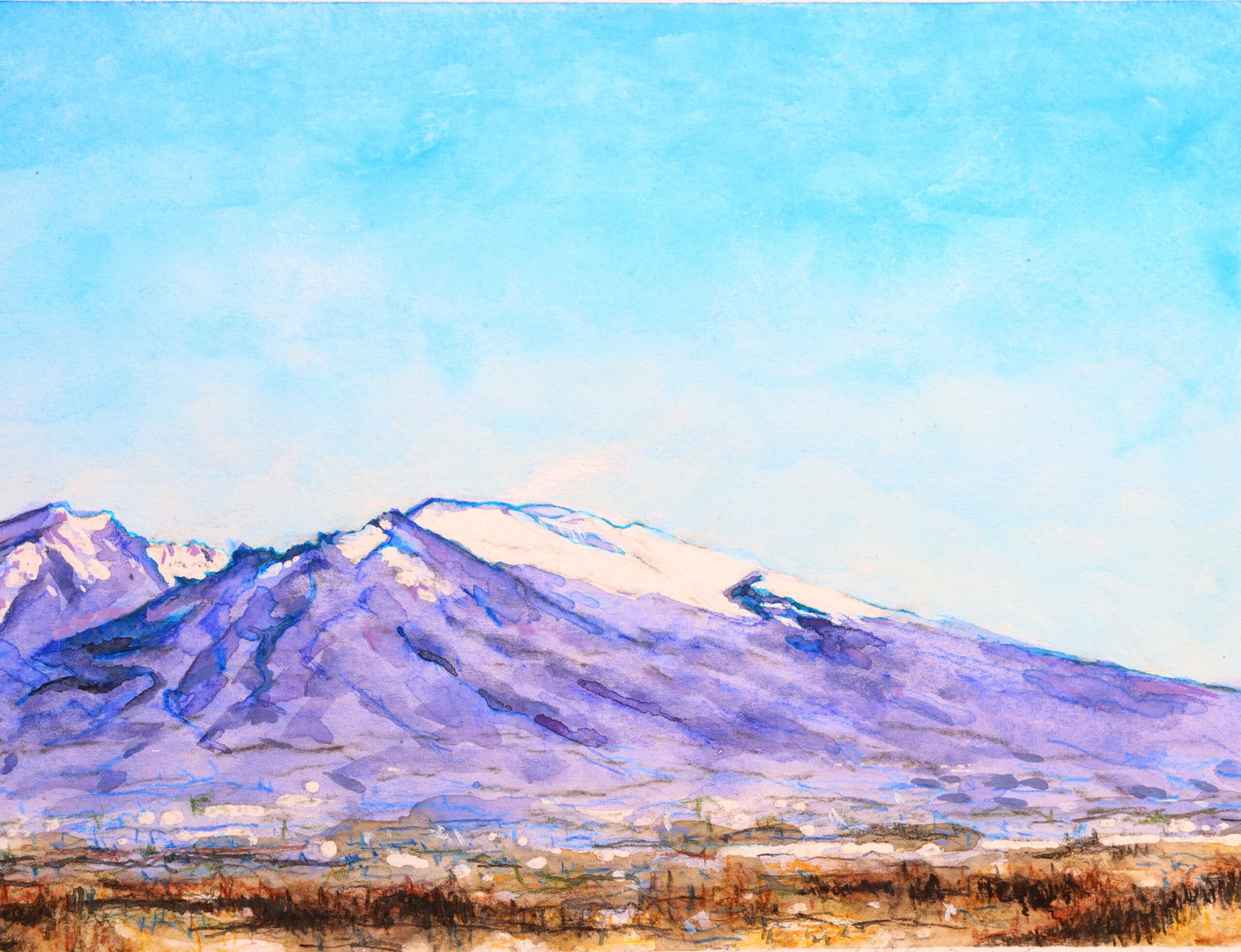 2~3年前に富士山を描いた絵を友人Iに見せたら、上手いとも下手ともいわず「浅間山描いてよ」と一言。友人Iに言われなくても佐久市民とって浅間山はシンボリックな山ですから、いつか描こうとは思っていました。いや、いつかなんて言ってないで本当はすぐやるべきなのはよくわかっているのですが。。。